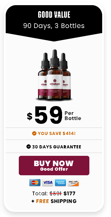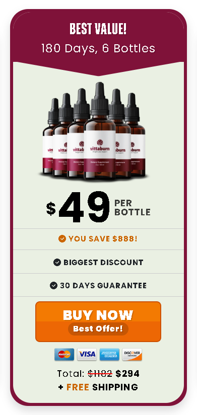 At this moment you can order Vittaburn supplement for 75% OFF + FREE Shipping. This is a Limited-Time Offer and it won’t be available for long.